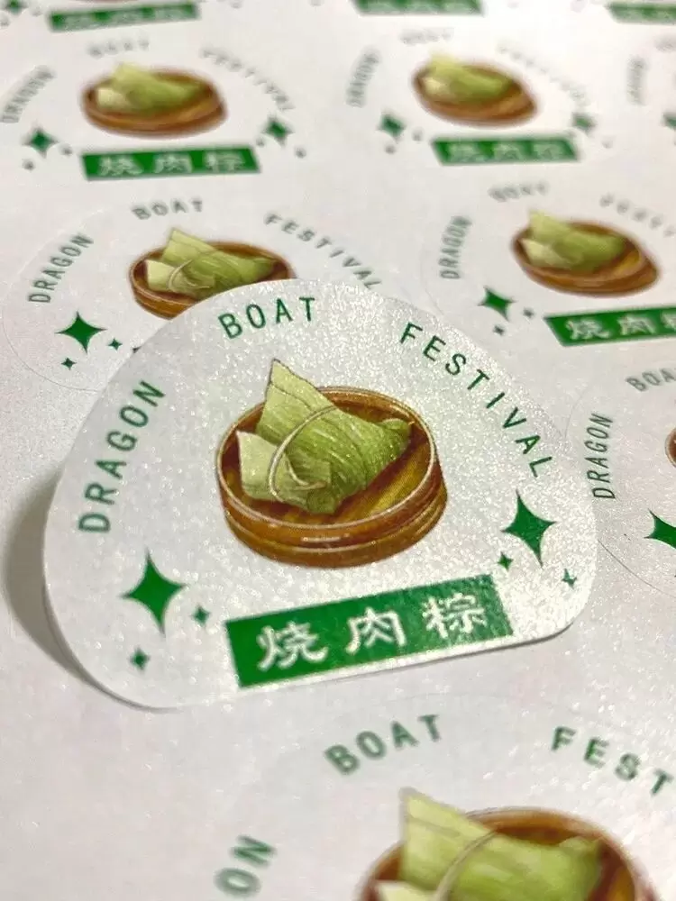 想必大家都有过这样的经历:在琳琅满目的粽子堆里,第一眼就被某个特别漂亮的标签吸引住了。没错,标签的面材决定了它的“颜值”。大多数粽子标签使用的是纸质面材,这种材料不仅环保,还能轻松印刷各种漂亮的图案。不仅如此,高档粽子有时会用到合成纸或塑料面材,这些材料不仅防水耐撕,还能保持标签的干净整洁,即使粽子包装有些湿气,也不会让标签皱巴巴的。